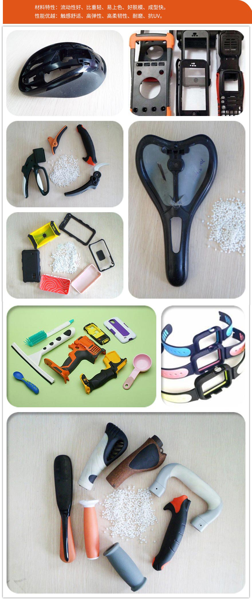 TPE包膠PC材料產(chǎn)品分類:TPE包膠系列 應用領域:電子產(chǎn)品、智能穿帶設備、工具手柄、電子配件、腳輪等 產(chǎn)品描述:硬度范圍:30A—9;材料顏色:本色、黑色、透明;加工工藝: 適用于 注塑、擠出 成型 服務熱線:0769-82654931 |